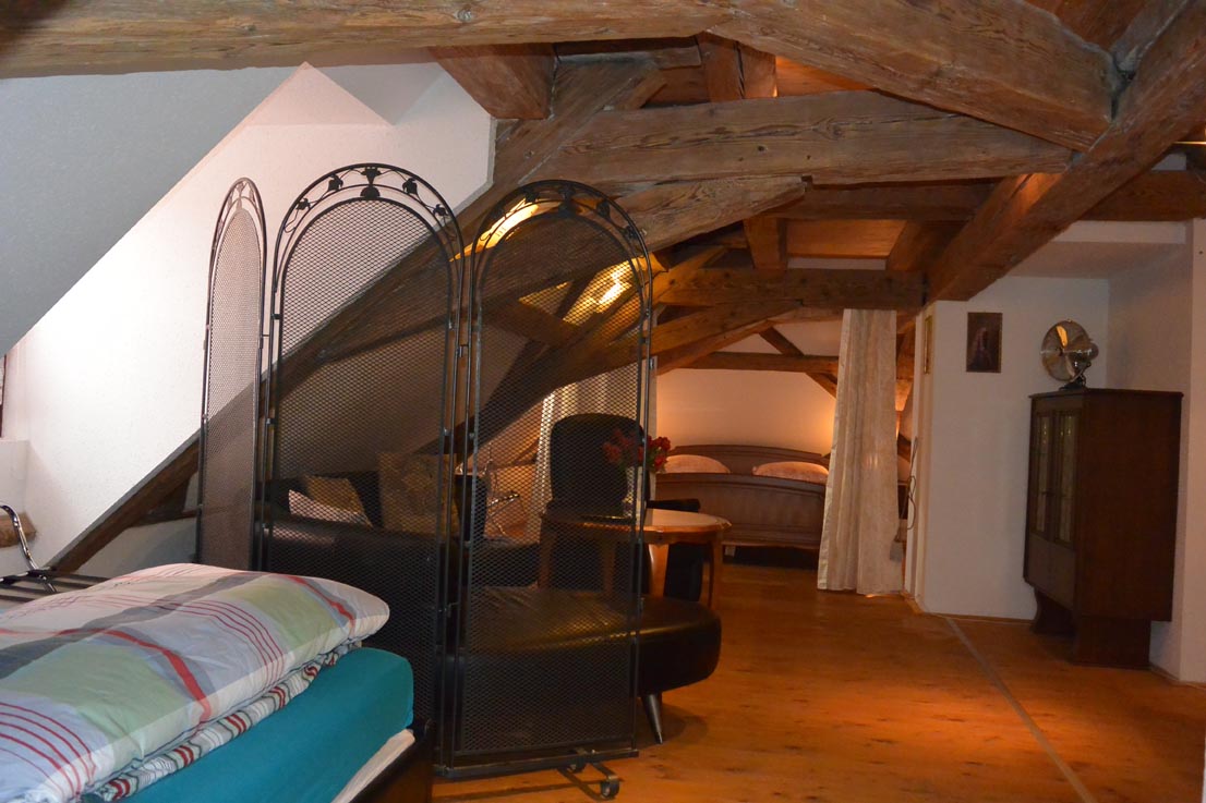 Das Studio ist Denkmalgeschützt und mit 300 Jahre alten Balken. Im Studio finden Sie viel Platz auf der neuen schönen Ledercouch und ein sehr schönes Italienisches Rokoko- Bett mit viel Platz (200x200cm) bietet Ihnen ein Wohlbefinden auch in der Nacht. Auf der anderen Seite des Großraumstudios ist ein weiteres Bett (140x200 cm ) vorhanden. Ebenso ist hier das Tageslicht Badezimmer mit Dusche und Badewanne.